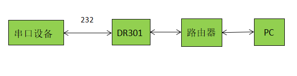 1、將串口服務器DR301(USR-DR301,簡稱301)的串口通過串口線(或USB 轉串口線)與pC相連接,通過網線將301的網口pC的網口相連接,檢測硬件連接無錯誤后,接入我們配送的電源適配器,給301供電。