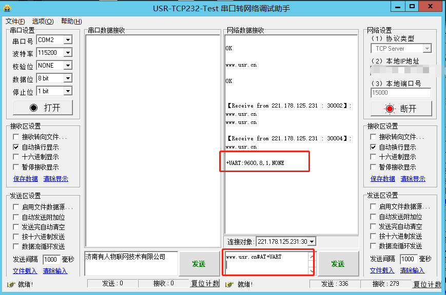 (4)修改模塊當(dāng)前的串口參數(shù),波特率改為9600;返回OK即為設(shè)置成功