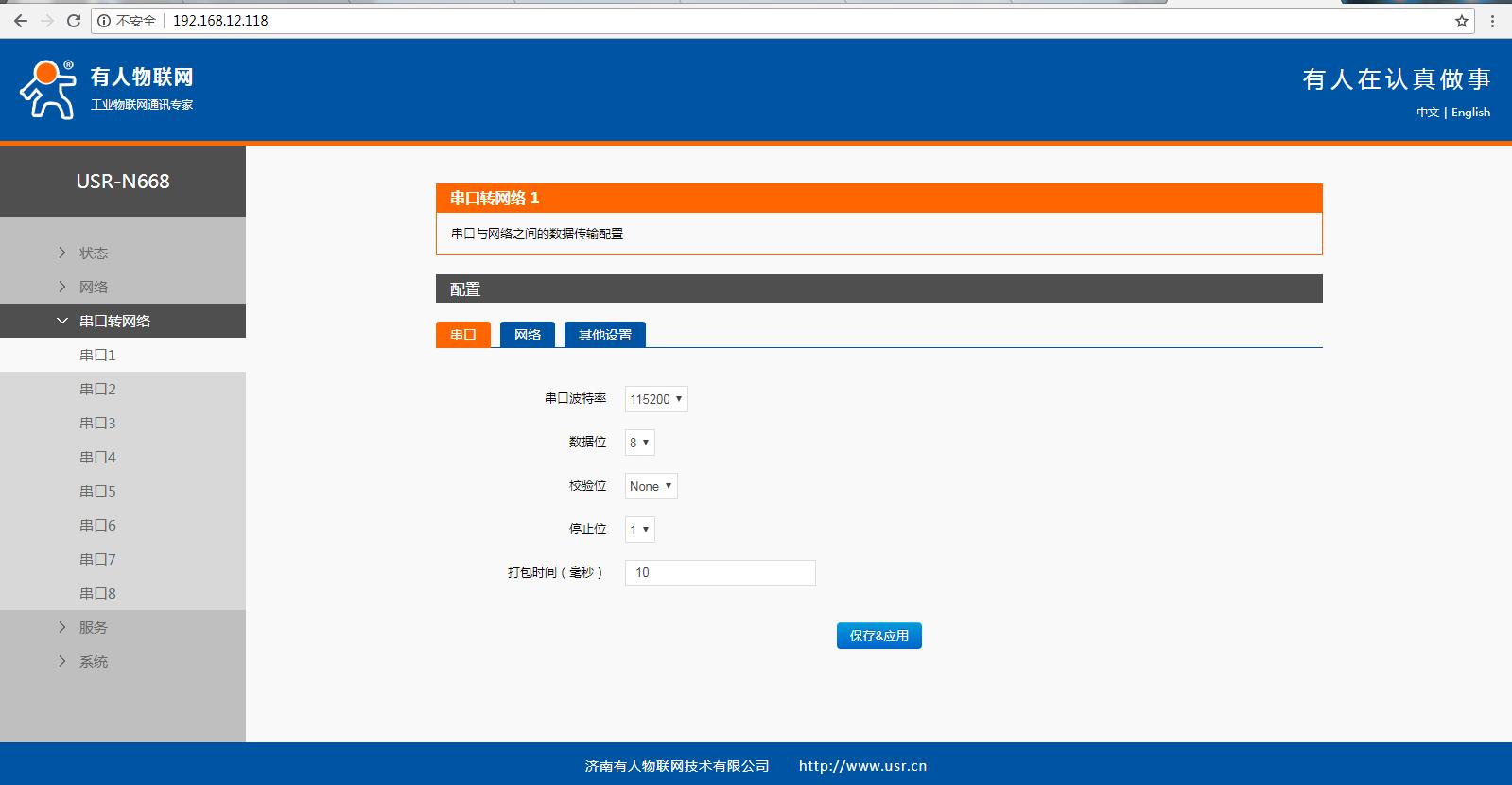 N668網口用網線接路由器,電腦也連接同一個路由器。用N668設置軟件搜索USR-N668的IP 192.168.12.118