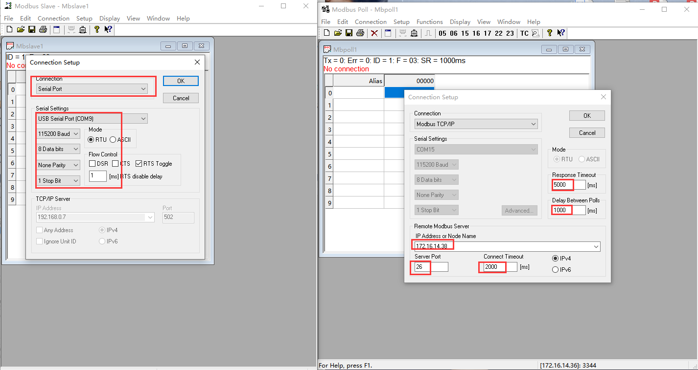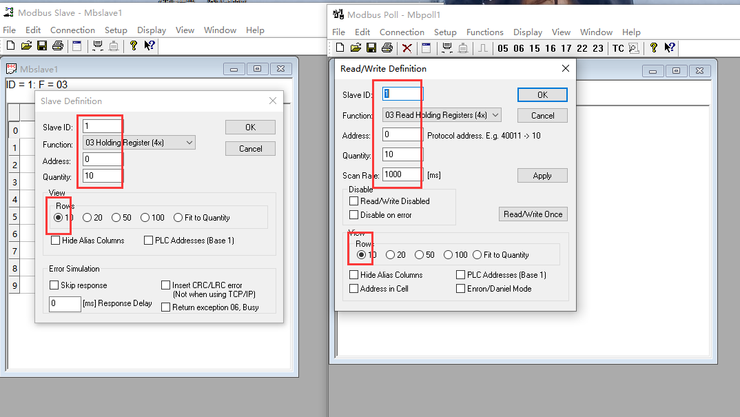4、MODBUS SLAVE和MODBUS POLL軟件設置: