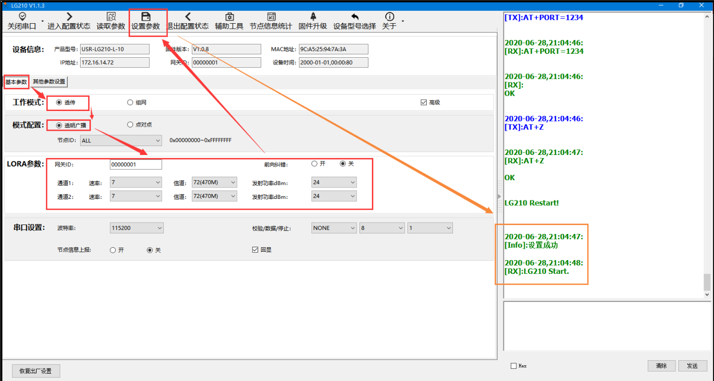 模式配置:“透明傳輸”,節(jié)點ID:“ALL”