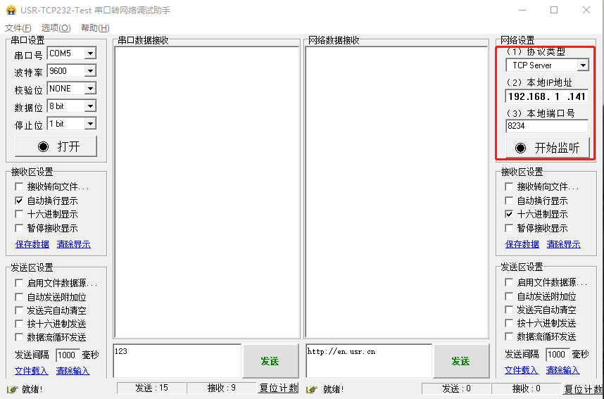 2、電腦打開串口調試助手的網絡端,做TCp server。