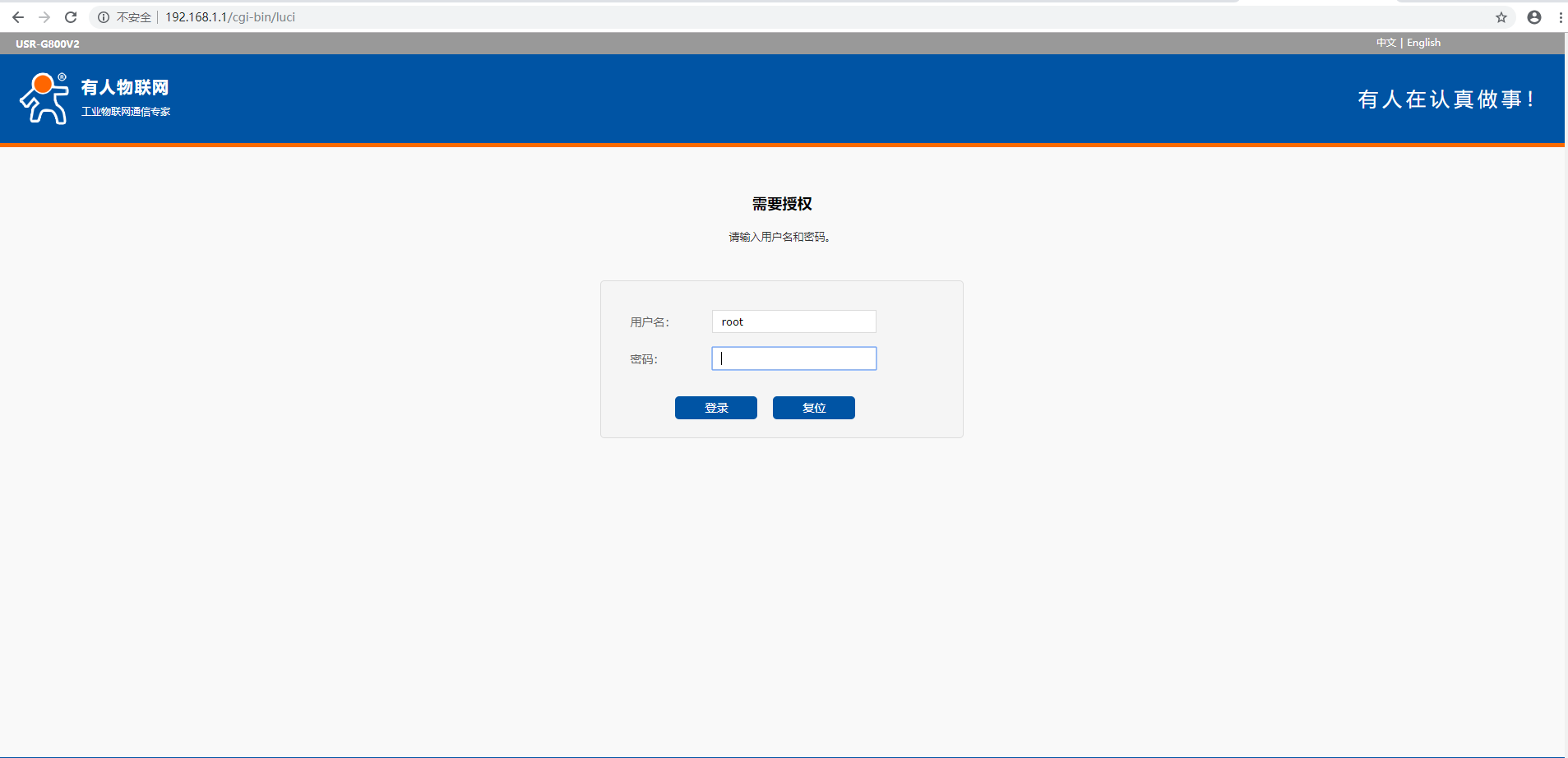 3、通過電腦獲取到的網關進入內置網頁,出廠默認用戶名密碼:root,root。
