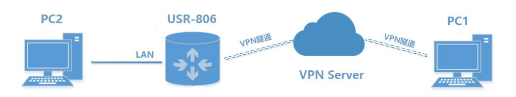 測試環境:PC 兩臺(接入同 VPN server),USR-G806 一臺(使用 4G 接口);