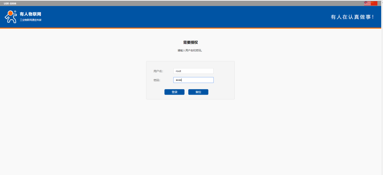 1、進入內置網頁,806默認登錄用戶名密碼:root,root。