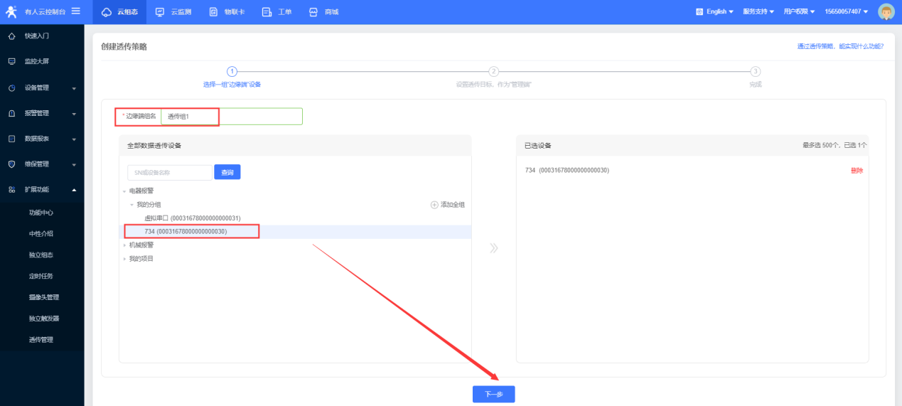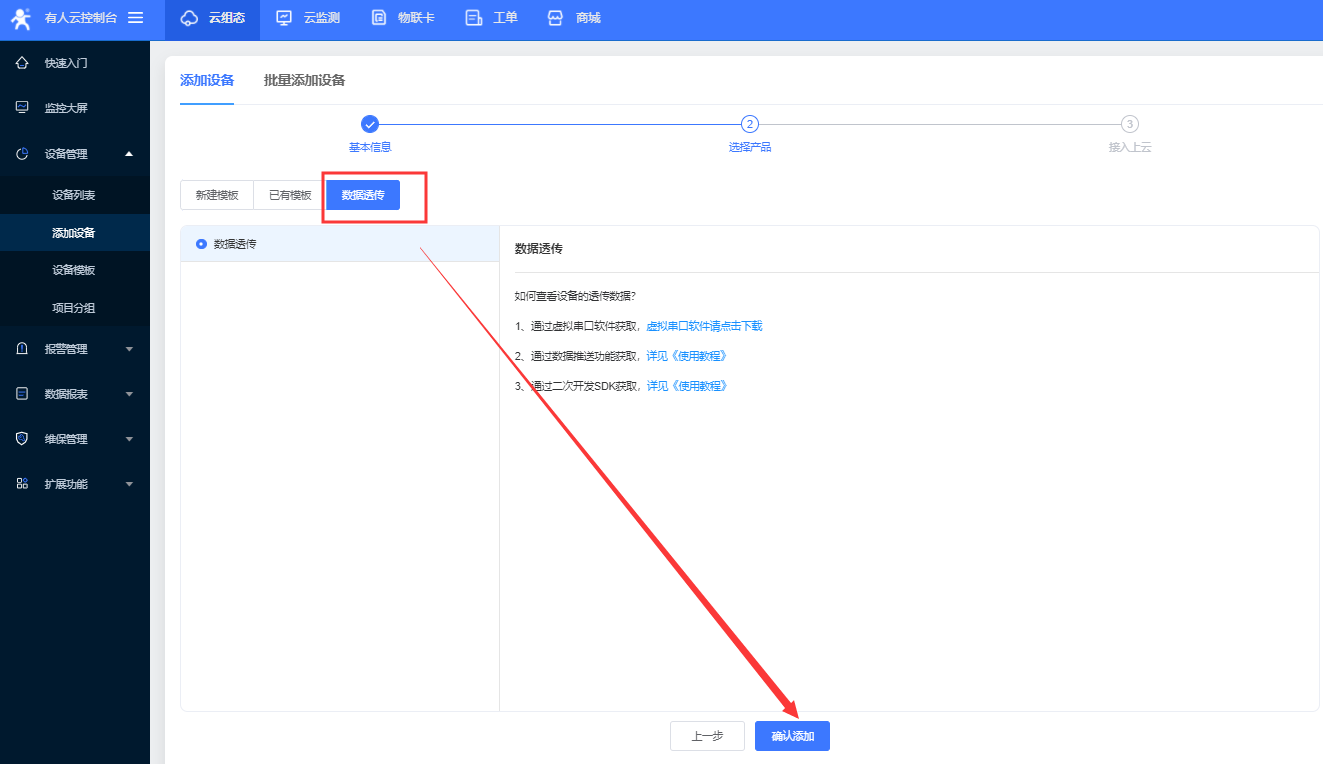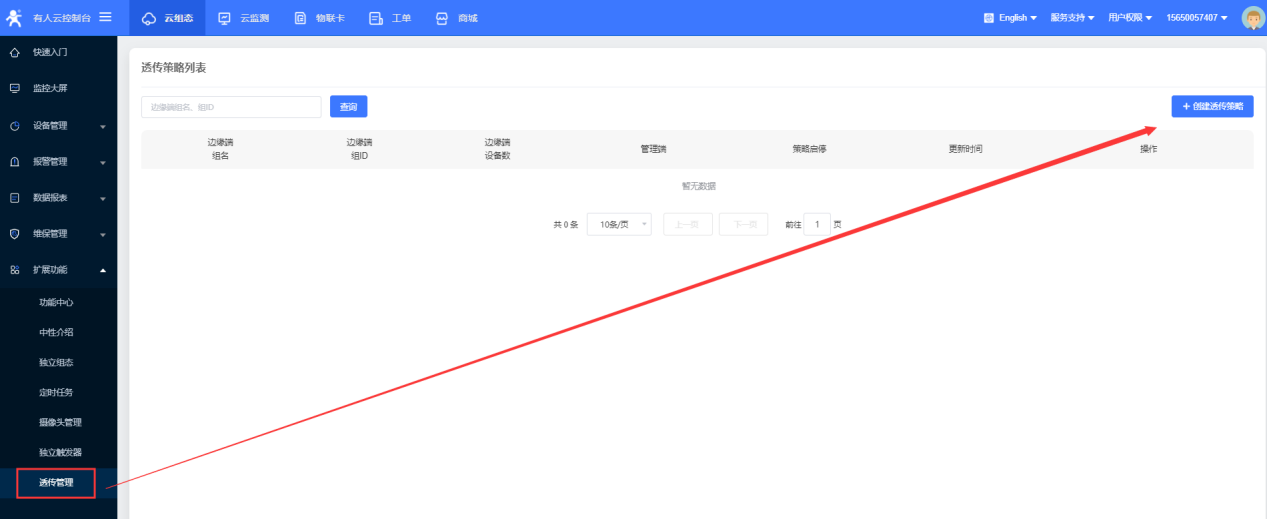 如果拓展功能中沒有透傳管理需要首先在功能中心開通此功能