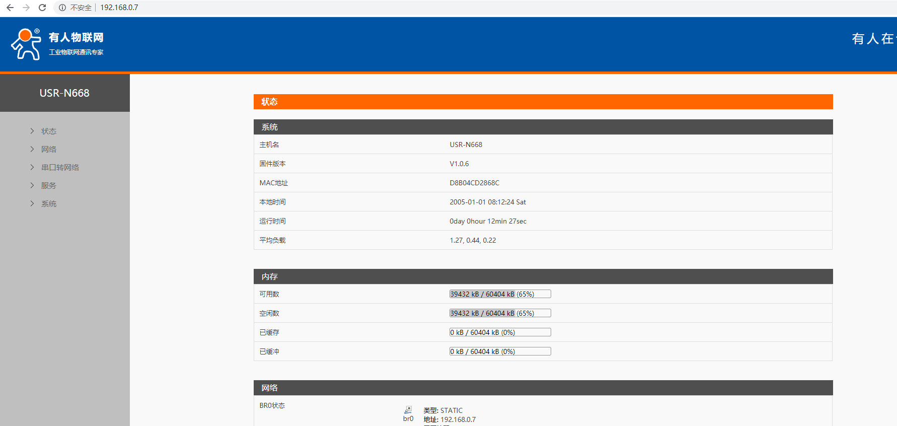 3. 瀏覽器輸入IP:192.168.0.7進入N668的內置網(wǎng)頁,用戶名密碼默認為admin