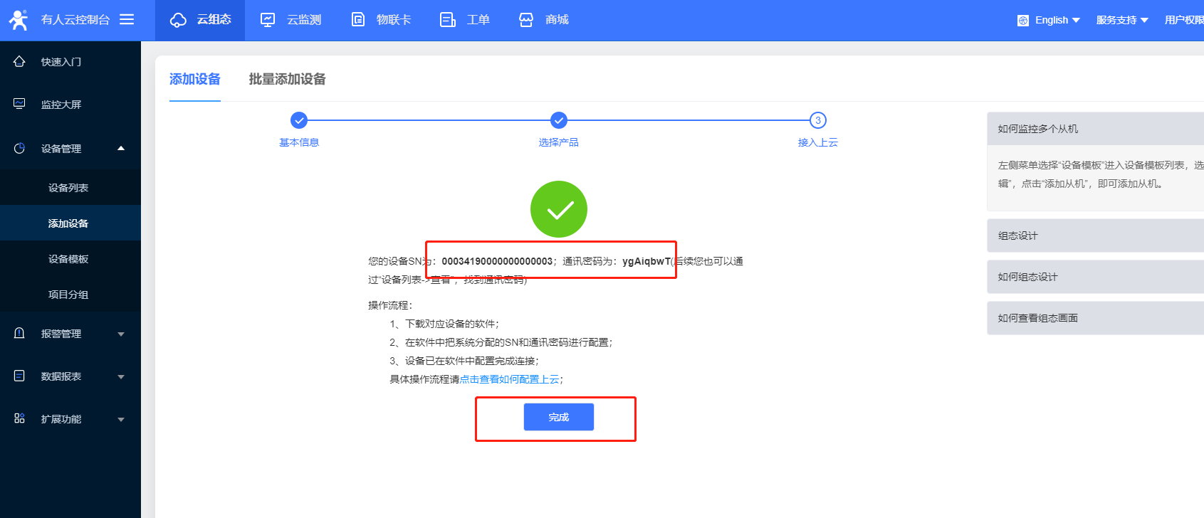 (1)首先在云平臺添加設備。