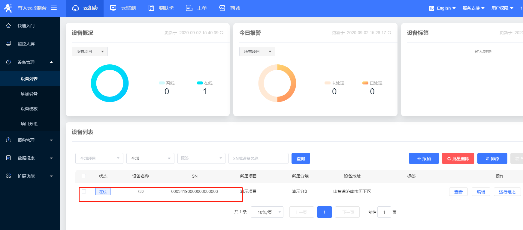 7、返回有人云界面可以看到730上線了