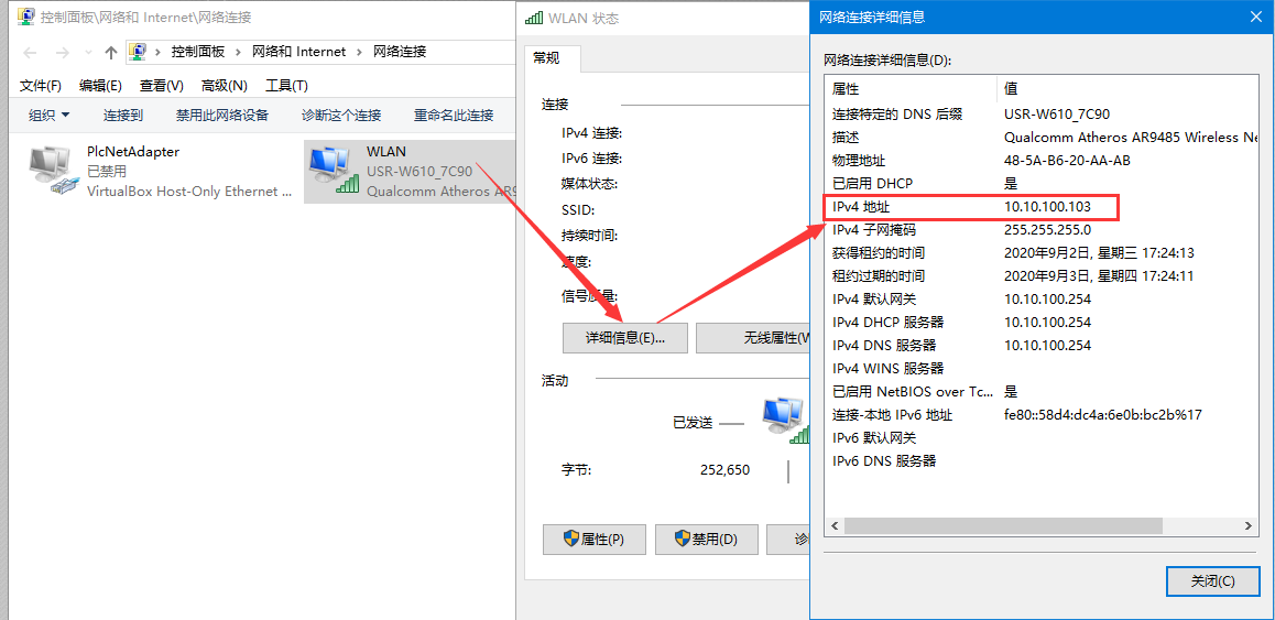 3、等待10s左右,模塊重啟,電腦重新連接模塊的wifi,確定電腦獲取的ip。