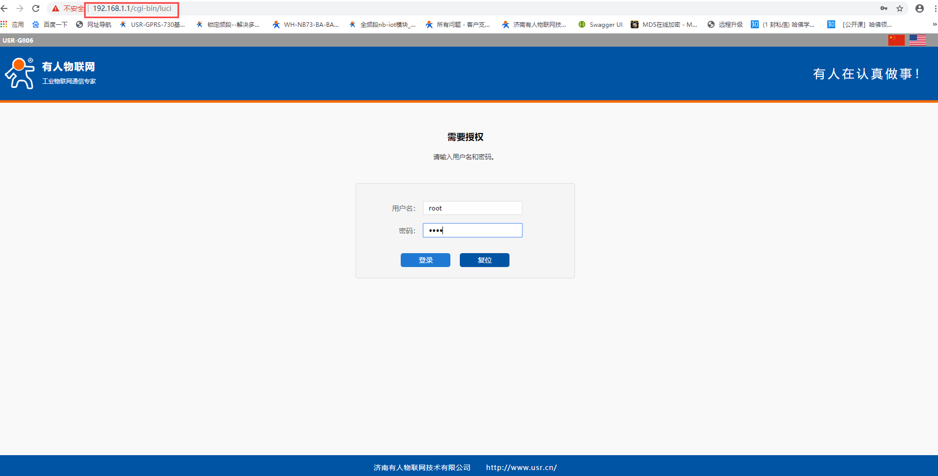 3.打開瀏覽器(不要用360瀏覽器),在地址欄輸入電腦獲取到的網(wǎng)關(guān),通過網(wǎng)關(guān)登錄內(nèi)置網(wǎng)頁界面,出廠默認網(wǎng)關(guān)為192.168.1.1,用戶名密碼都是root