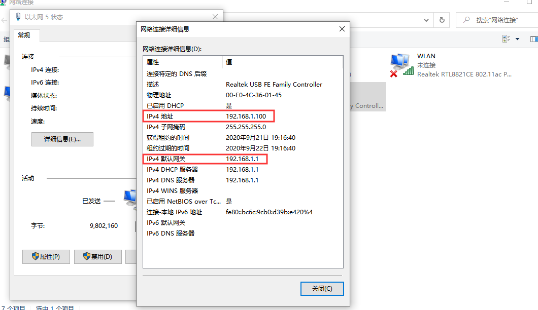 2.雙擊該網卡,點擊詳細信息,可以查看電腦獲取到的IP以及網關