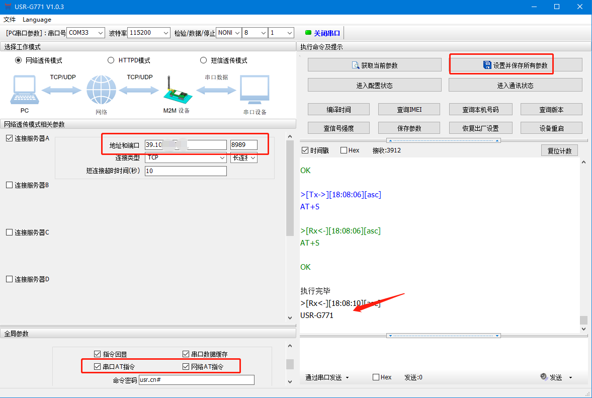 (2)測試說明:本測試連接的是我司的遠程服務器,實現的功能是在服務器端查詢或更改模塊的參數