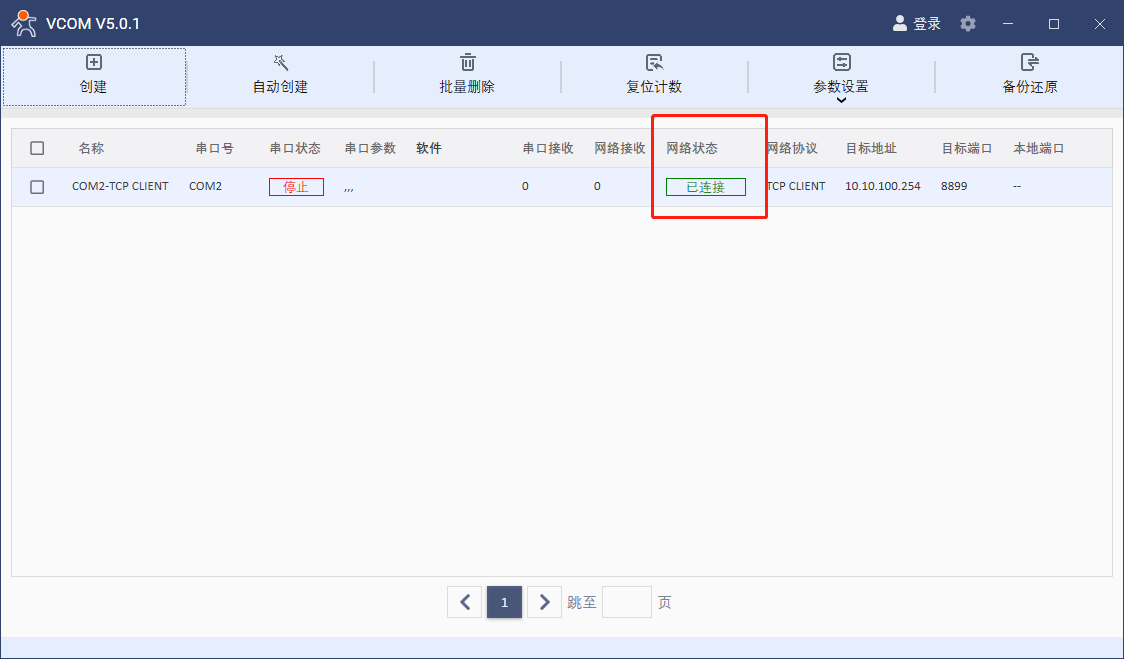 點擊確定之后可以看到虛擬串口的連接狀態為已連接。