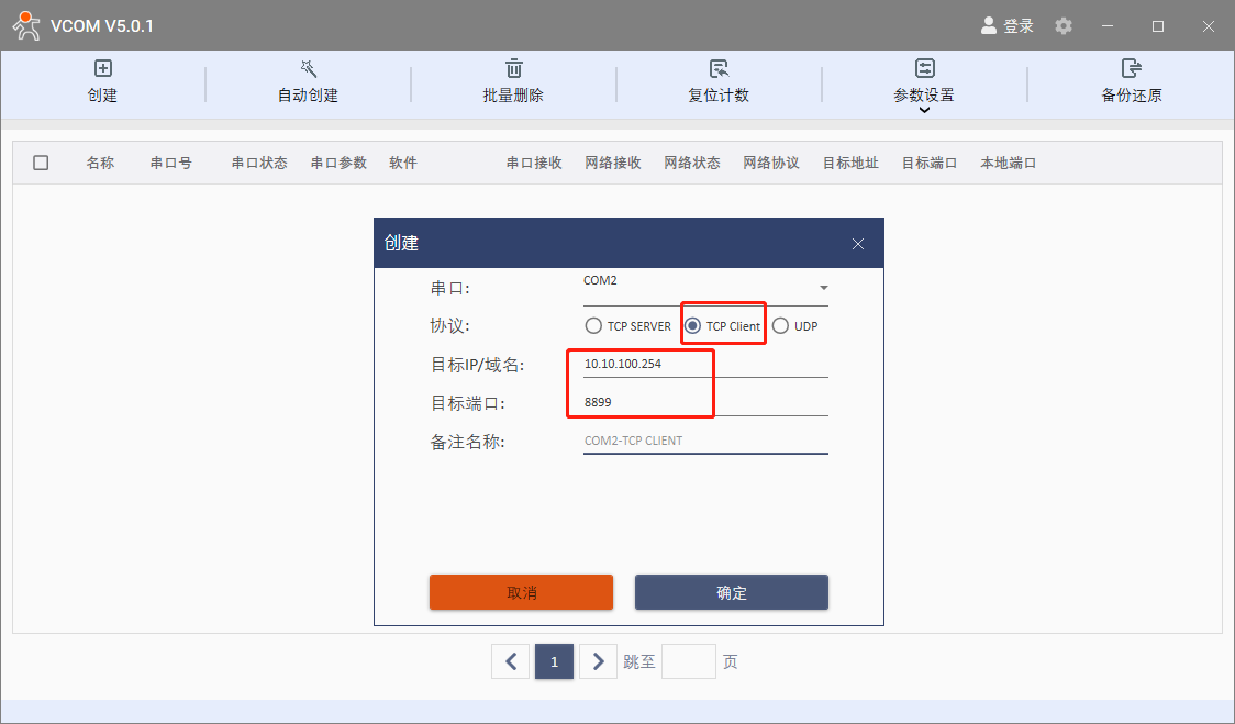TCP CLIENT 的目標端口=TCP SERVER 的本地端口(這個端口可以隨意設置,只要不是特殊端口或重復端口就可以)。