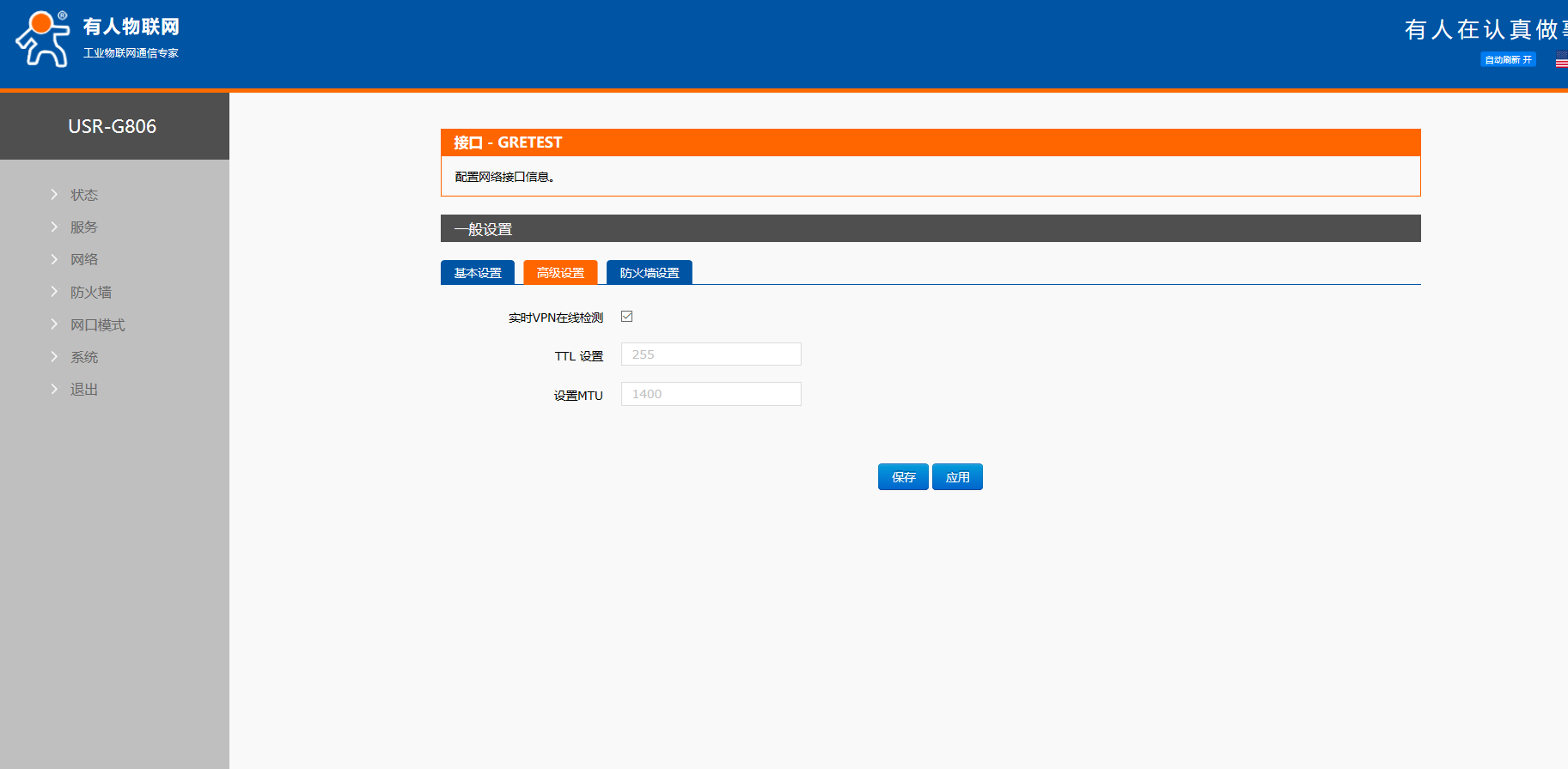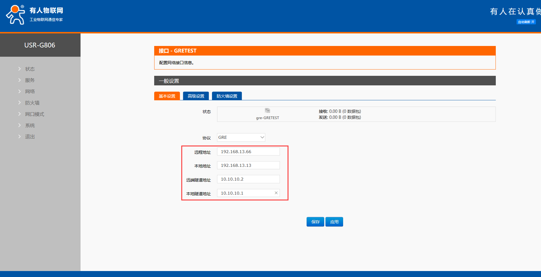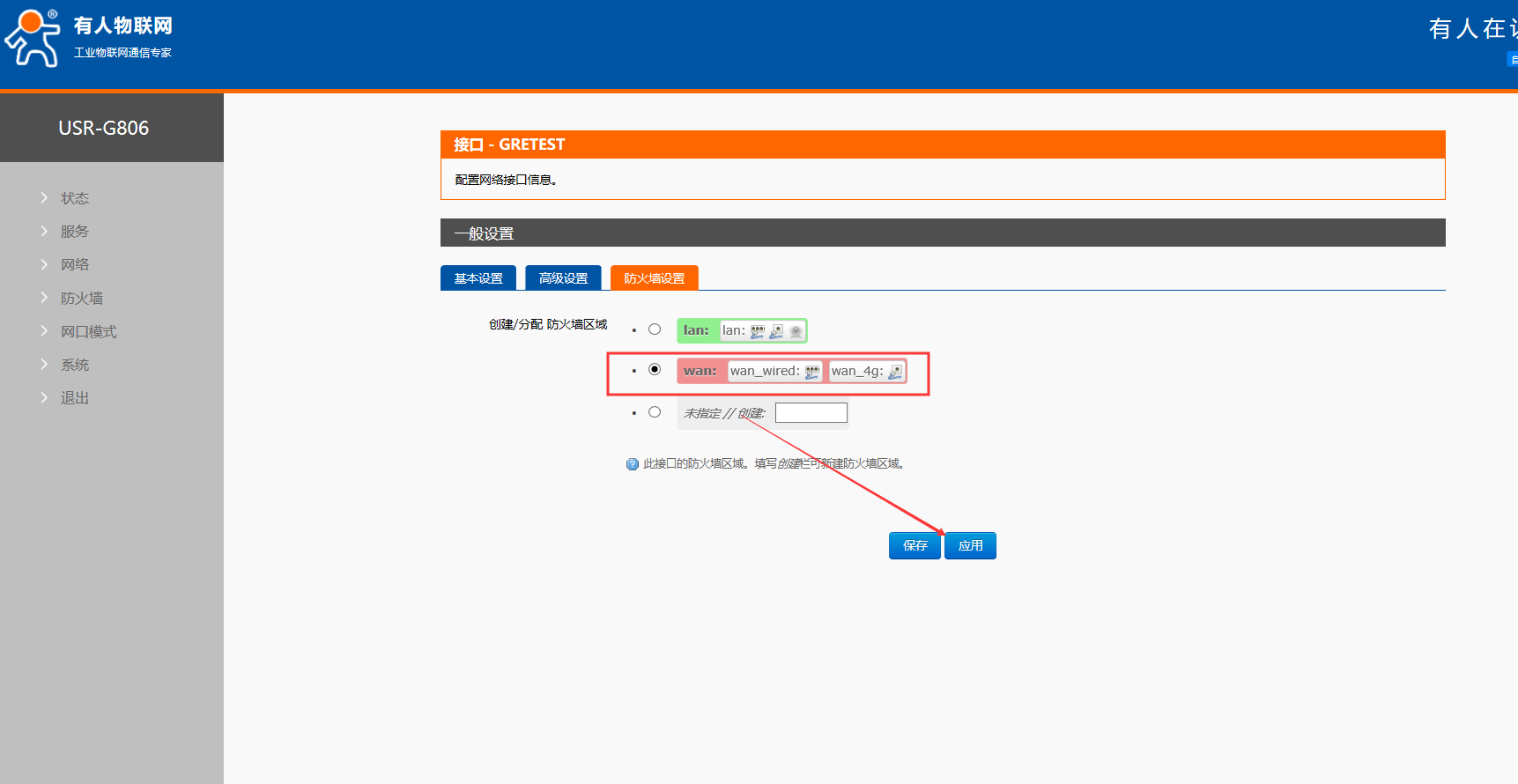 防火墻選擇WAN接口,設置完成后點擊保存應用