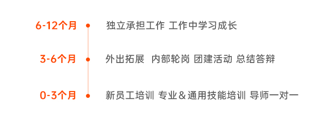全面培養,快速成長 0-3個月:導師一對一,專業&通用技能培訓