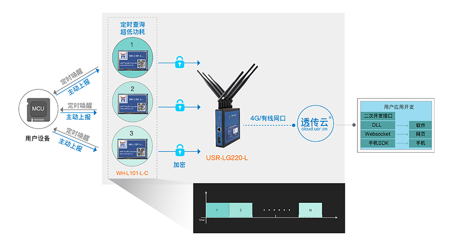 1、使用此模式前客戶需要先設置集中器相關參數,設置完成后集中器即處于監聽狀態,節點入網,集中器回復入網信息并保存節點信息,當入網節點數大于0或者數據庫中已存在入網節點時,集中器會根據所設喚醒周期、輪詢周期、輪詢超時時間來周期性發送喚醒數據喚醒節點,并將用戶設置的喚醒數據下發給節點。