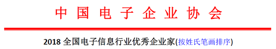 全國電子信息行業優秀企業家評選表彰活動是經國務院糾風辦、工業和信息化部批準的全國性行業評選活動,旨在表彰在戰略定位、創新能力、核心競爭力、社會責任感等方面做出突出成績的企業家,由中國電子企業協會每兩年舉辦一次。