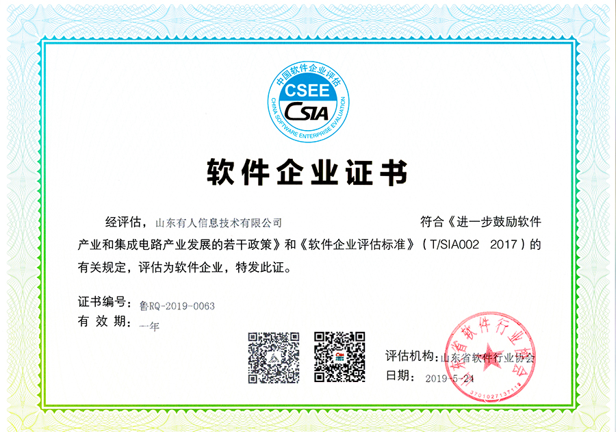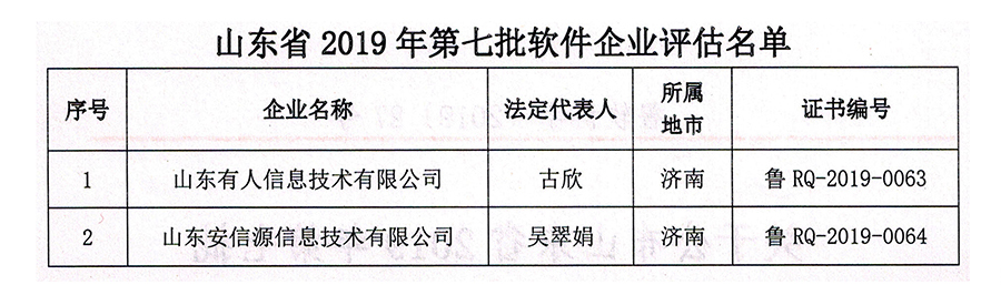 在“山東省2019年第七批軟件企業”評估中,有人物聯網被山東省軟件行業協會認證為軟件企業。聯想到之前已經獲得的軟件產品認證,這也意味著,有人正式成為“雙軟企業”。