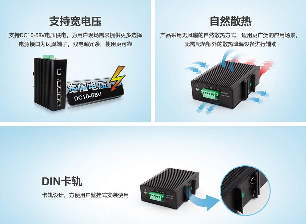 產品分為電口型、電口+光口型兩類,提供RJ45標準網口及光纖接口供用戶選擇