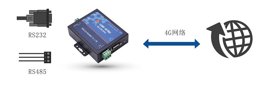 4G DTU在此工作模式下,用戶的串口設備,可以通過 G781 發送數據到網絡上指定的服務器。G781 也可以接受來自服務器的數據,并將信息轉發至串口設備。用戶不需要關注串口數據與網絡數據包之間的數據轉換過程,只需通過簡單的參數設置,即可實現串口設備與網絡服務器之間的 Modbus RTU<=>Modbus TCP 互轉通信。