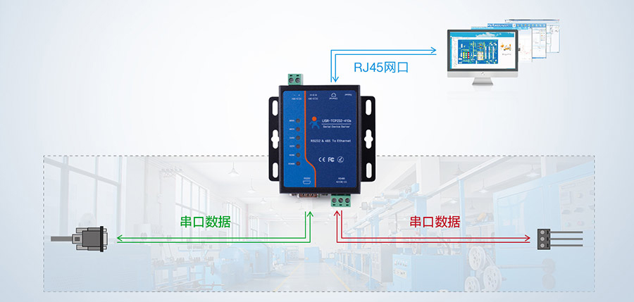 原理:計算機串口(COM端口)和以太網局域網(LAN)之間傳輸數據的設備。這使得可以使用以太網代替串行電纜,最大限度地減少工作站的混亂,并允許將串行設備放置在距離計算機較遠的位置。