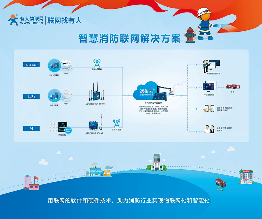 有人專注物聯網消防領域多年,為智慧消防提供聯網傳輸解決方案,助力智慧消防產業發展。根據智慧消防的實際應用場景和煙感廠家的不同需求,有人推出NB-IoT、LoRa、4G等產品,配合云端使用,為消防煙感行業提供可靠的需求定制服務。