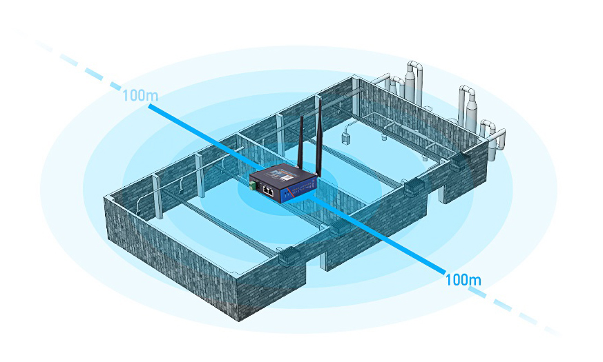 工業路由器的聯網需要通過4G網絡完成,但覆蓋范圍需要WIFI無線網絡的支持。工業路由器的覆蓋范圍理論值是100-300米,但實際環境應用中很難到到理想值。因為實際應用的環境中可能有水、高壓線、金屬物等干擾信號強度,那么如果想通過工業無線路由器覆蓋大面積范圍時,應該注意什么?