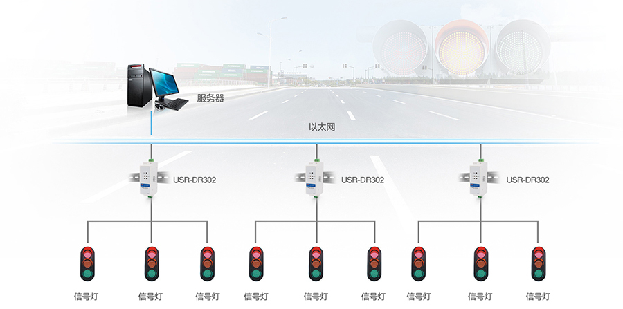 聯博士RS485串口服務器連接交通信號燈,將交通路況信息送上網絡端,控制室人員可根據 現場情況快速做出交通調度和規劃。