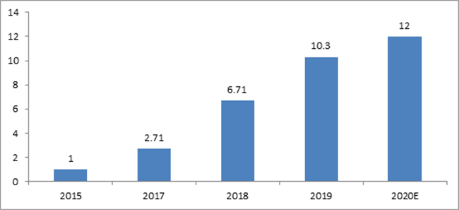 (近年移動物聯(lián)網(wǎng)連接數(shù),2020為預(yù)期)
