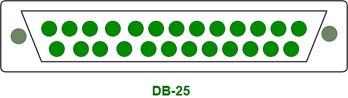 并行端口通常在zip驅動器,打印機,硬盤驅動器,CD-ROM驅動器等中實現。DB-25引腳連接器圖如下所示。