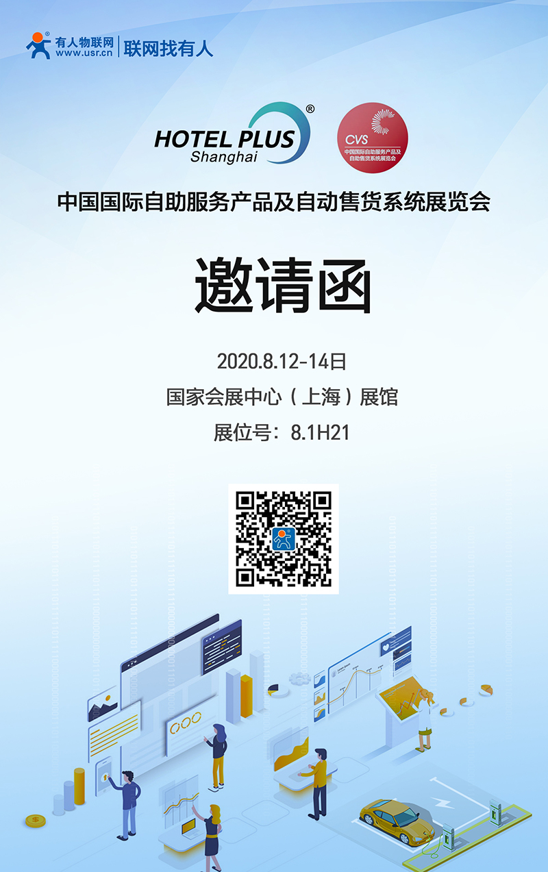 8月12-14日,“2020中國國際自助服務產品及自動售貨系統展”將在上海市青浦區崧澤大道333號國家會展中心(上海)展館舉辦。屆時,有人物聯網在8.1館,H21展位,誠邀您前來參加。