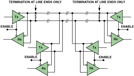 圖7. 2線,多點,半雙工RS-485網(wǎng)絡(luò)