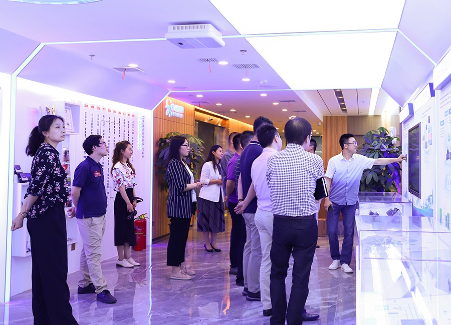 參觀公司現(xiàn)代化展廳時,集團戰(zhàn)略總監(jiān)、愛物聯(lián)總經理王偉向校友一行演示了公司在工業(yè)水處理、能源數據采集、智慧停車、智慧農業(yè)、智慧畜牧業(yè)等領域成功落地的解決方案案例。校友一行對有人物聯(lián)網在聯(lián)網通訊領域的業(yè)績贊不絕口。