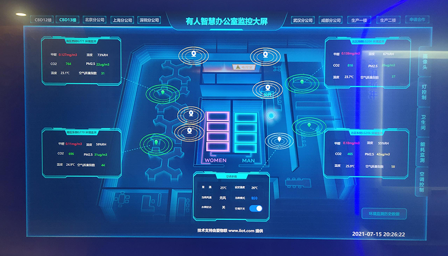 以我們的辦公室為例,將我們兩層樓的辦公環境以及有5個分公司,現在通過物聯網技術把這些物聯網辦公環境管理起來。