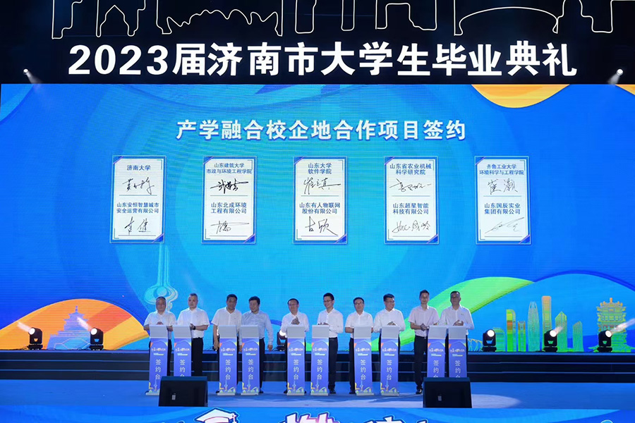 青春濟南,共贏未來。6月16日,“畢業,當燃在濟南”——2023屆濟南市大學生畢業典禮在山東博物館南廣場舉行,山東省委常委、濟南市委劉強書記出席活動并為畢業生們送上美好祝福。山東大學軟件學院院長崔立真、山東有人物聯網股份有限公司董事長古欣出席典禮,并在產學研融合校企地合作項目簽約環節進行現場簽約。