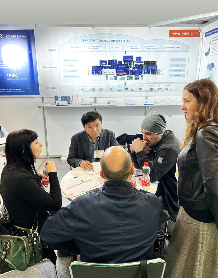 本次展出產品主要包括4G/5G工業路由器、4G/Cat.1 DTU、串口服務器、工業交換機、無線通信模組等產品,其中5G工業路由G817c、5G CPE U200、邊緣計算網關M100等有人明星產品頗受各國參展者關注,紛紛駐足參觀探討。