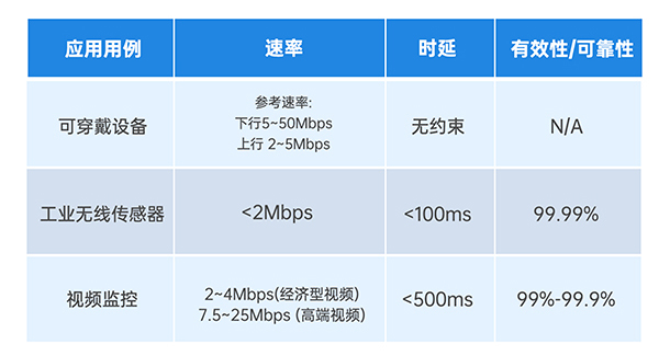 根據3GPP R17定義 RedCap主要面向三大業務場景:工業傳感器、視頻監控和可穿戴設備。下表為三種場景對于網絡的具體需求: