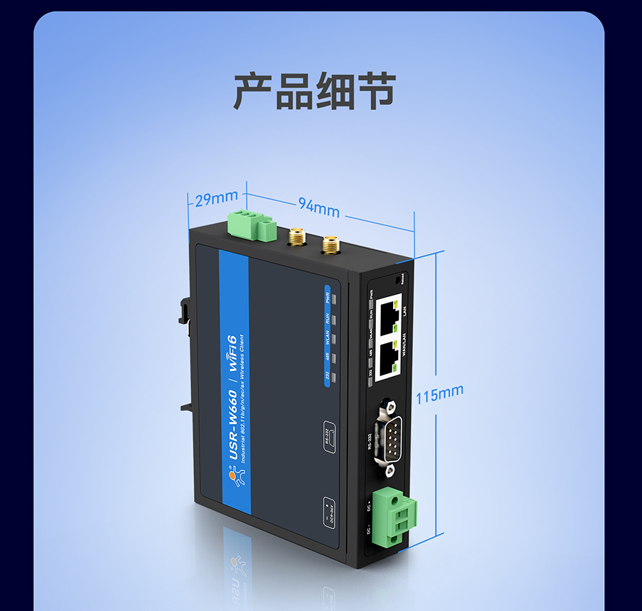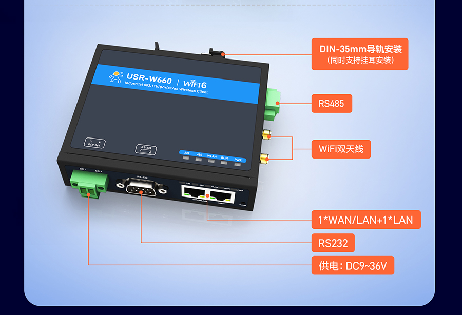 有人物聯“WiFi6家族”又添強力干將——WiFi6工業無線客戶端產品W660,它支持WiFi多模式、雙頻WiFi6、串口數據采集、千兆網口......功能亮點頗多,能為AGV小車、搬運機器人、巡檢機器人等移動場景帶來快速、穩定的無線體驗,一起解鎖更多亮點吧!