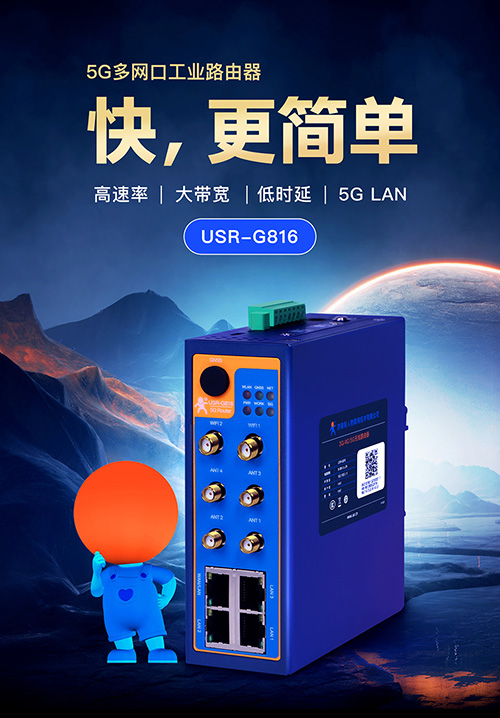 USR-G816是一款高性能5G工業路由器,其核心特性完美匹配PLC對接需求: