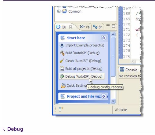 在LPCXpresso開(kāi)發(fā)界面里,快速啟動(dòng)面板里包含了使用最頻繁的各種操作選項(xiàng)。它位于窗口的左下角。
