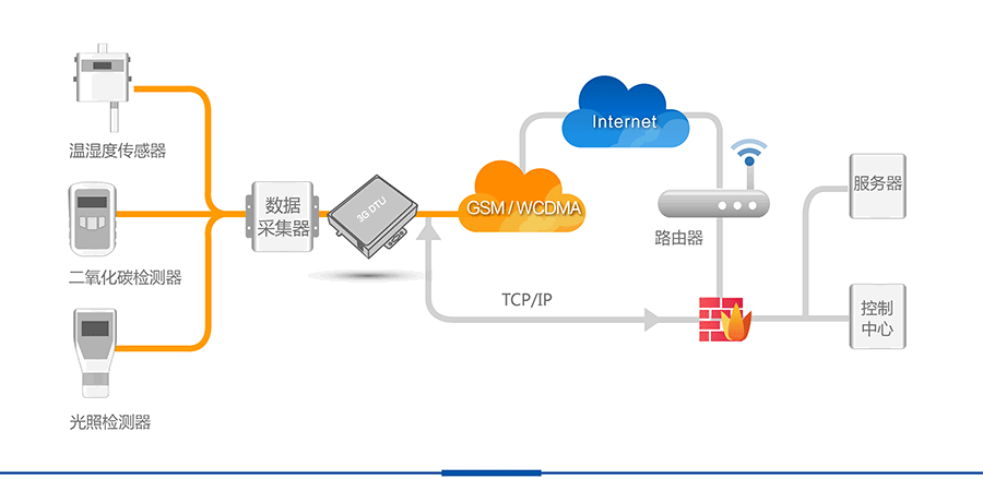 在智能農業企業中,3G DTU可以將農業大棚里的各類傳感器數據進行采集,并傳輸到遠程服務器及 控制中心,實現數據實時監測,促進農業物聯網的發展。