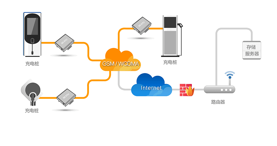 將3G DTU接入充電樁中,將充電樁的各項數據實時發送至服務器中,方便統一管理。