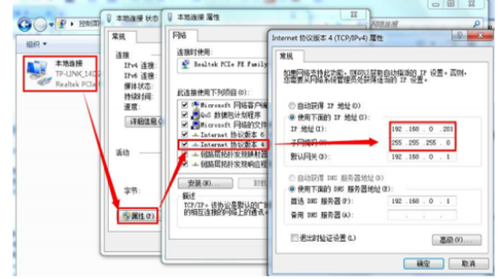(3)串口服務器與電腦直接相連后,要給電腦設置一個靜態的,與N540的IP在同一個網段的IP,比如:192.168.0.201。