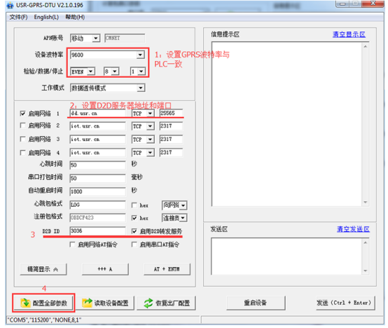 第一,設置GPRS DTU參數:設置驗證ID為3036.還需要設置GPRS串口的參數,波特率,校驗位、數據位、停止位。