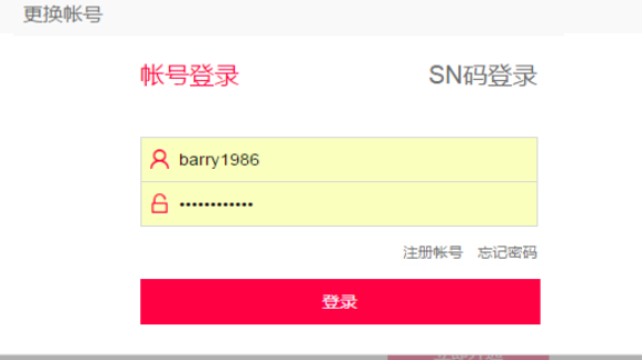第四,關聯花生殼賬號。登錄成功后,切換賬號,關聯到花生殼的賬號登錄,點擊SN碼選擇切換賬號。
