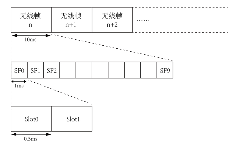 其中,每個時隙(Slot)0.5ms,2個時隙組成1個ms的子幀(Sub-Frame),10個子幀組成1個10ms的無線幀(Radio Frame)。因此,1個無線幀包含20個時隙。