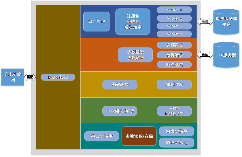 USR-GPRS232-721充電樁專用DTU(以下簡稱DTU)是專門為充電樁平臺開發(fā)的一款通訊設(shè)備。設(shè)備在硬件上支持9V至24V寬電壓供電,供電方式可選擇DC插座或DIP端子供電,在通訊接口上提供RS232,并使用端子引出,可讓用戶方便的與終端設(shè)備通訊。在軟件上支持4路Socket通訊,支持心跳包,注冊包等功能,以上可以使用AT指令進行設(shè)置。并且支持FTP協(xié)議,通過簡單的協(xié)議可以輕松下載遠(yuǎn)程服務(wù)器上的文件,并為充電樁終端遠(yuǎn)程升級提供解決方案。