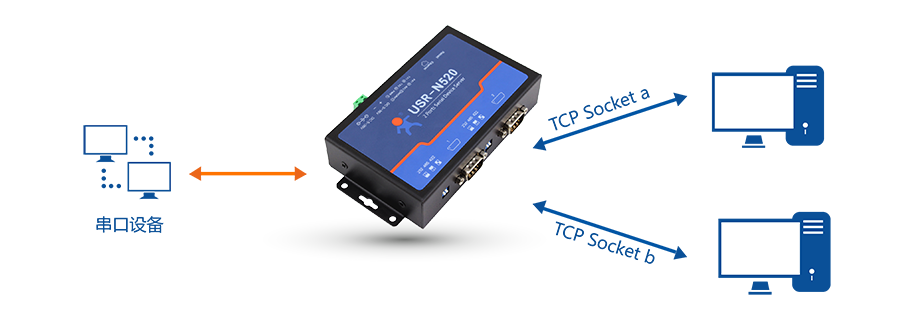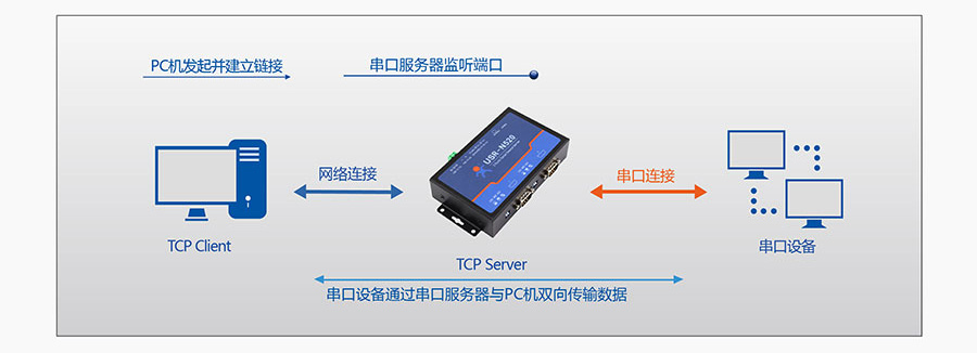 串口服務器同時監聽端口,將所有接收的數據轉發給串口設備。